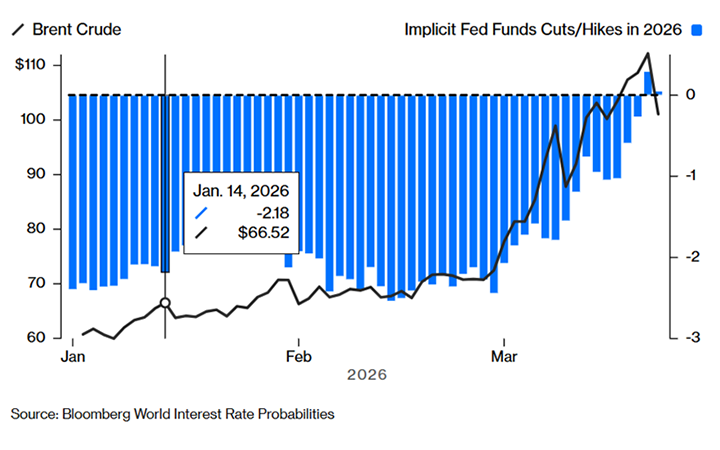 Marknadens prissättning av räntesänkningar har också nyligen förändrats, och många länder, inklusive USA (se diagrammet nedan), väntas nu höja lånekostnaderna som svar på inflation över målet. Dessa faktorer understryker det föränderliga läget och möjlig påverkan på utsikterna för ränteplaceringar och andra tillgångsslag.